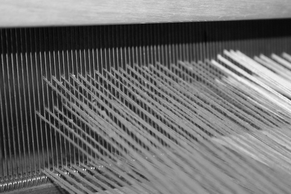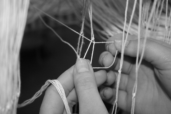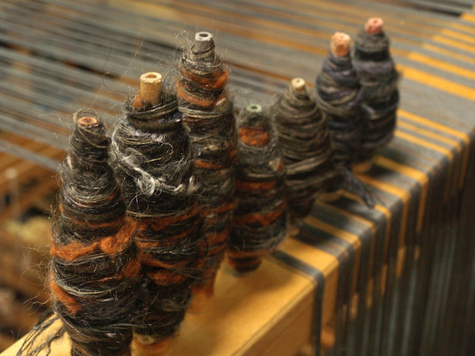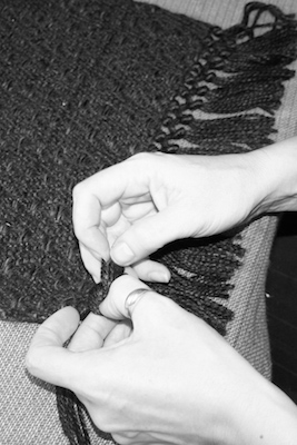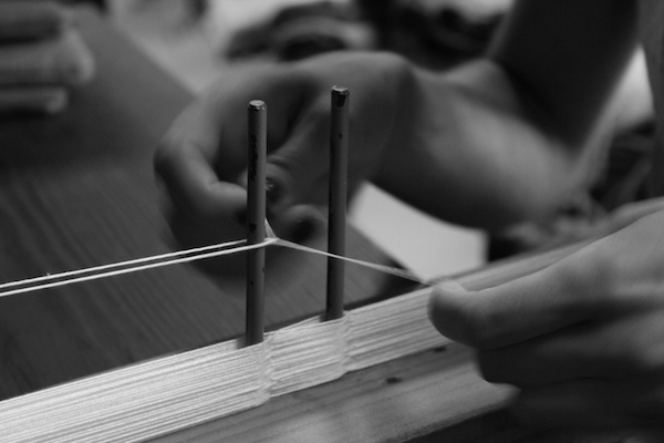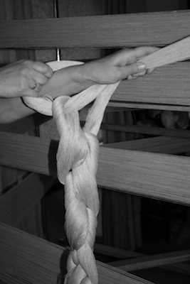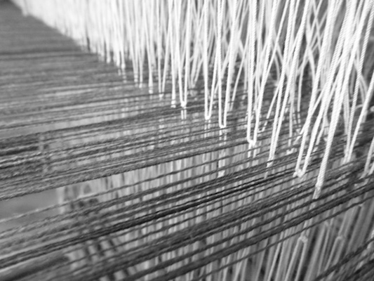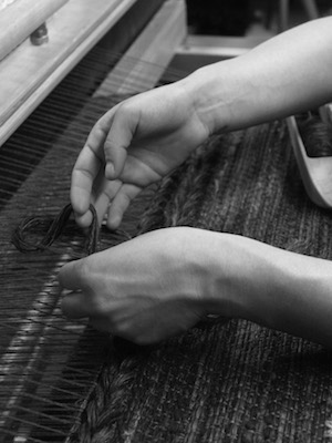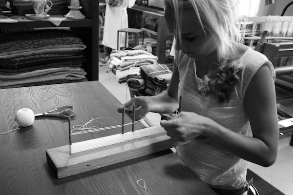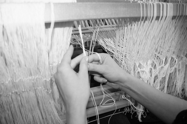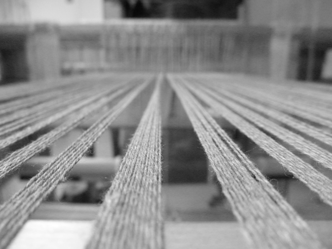 Vispirms katru pavedienu kopā liek mūsu prasmīgie aušanas meistari.