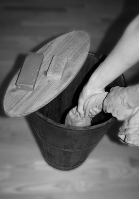 Kad šalle ir uzausta, arī tās pēcapstrādē ir tīrs roku darbs. Šalli izņem no stellēm, to rūpīgi mazgā, mīkstina, filcē, stērķelē ar rokām, izmantojot Ars Tela īpašās mīkstināšanas receptes, kas ir noslēpums. Tāpat katrs izstrādājums tiek gludināts ar tvaiku. Tad meistari šallei veido bārkstis. Roku darbs ir arī mūsu firmas birkas piešūšana. Katrai šallei piestiprinām arī ziņas par tās sastāvu, kā to kopt un dizainera un audēja vārdu. Roku darbs šalles izgatavošanā prasa arī rūpīgu kopšanu tās lietošanā.